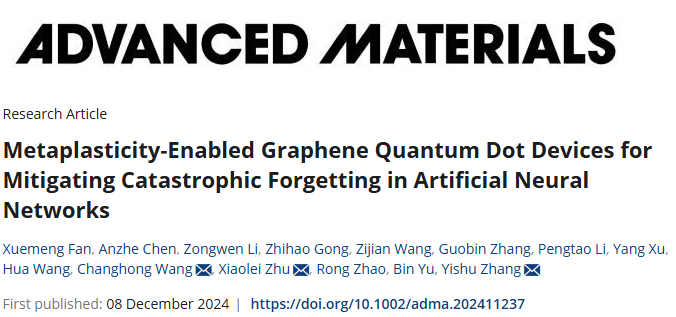 IF 27.4!基于石墨烯量子點(diǎn)的元可塑性神經(jīng)突觸器件在緩解人工神經(jīng)網(wǎng)絡(luò)災(zāi)難性遺忘中的應(yīng)用