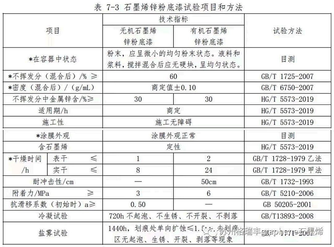 石墨烯鋅粉底漆試驗項目和法